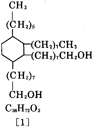 又称2-己基-3- 辛基-4,5-二羟辛基 环己烷。无色透明液 体。相对分子质量 537。相对密度约0.9。 熔点小于-60℃。沸点 200℃(1.333Pa)。闪点 268℃。燃点315℃。不 溶于水,溶于常用有 机溶剂。本品系由碳 18不饱和脂肪酸二聚 后所形成的二聚酸, 加氢后,形成带有侧链的环己烷。这种结构的 二醇与通常的二醇相比,因含碳数高,所以,熔 点低、粘度低;再者,由于有两个亲油基的 侧链,所以耐水性特别高。大鼠经口LD50 2000mg/kg。