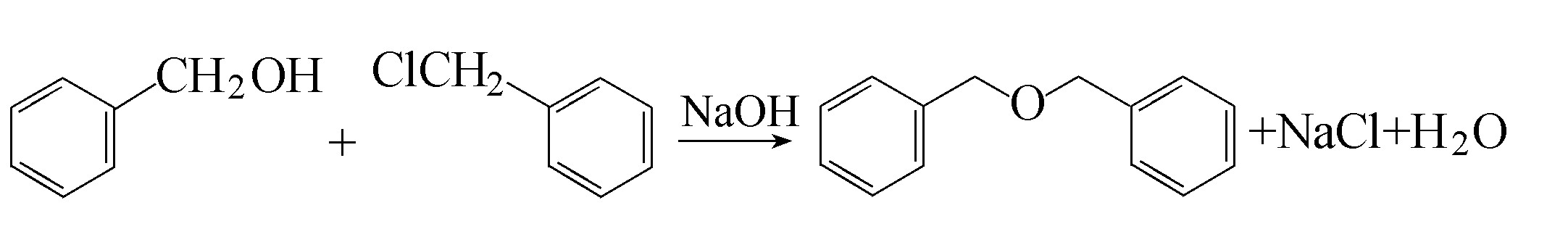 二苄醚可由苄醇与稀硫酸共热制成。但由于它也是氯化苄碱性水解的副产物,所以更为易得和方便。在氯化苄水解制取苄醇时,所产生的苄醇会有一部分在碱性条件下与氯化苄反应生成二苄醚,因其沸点比苄醇高较多,所以可在分馏时取得。