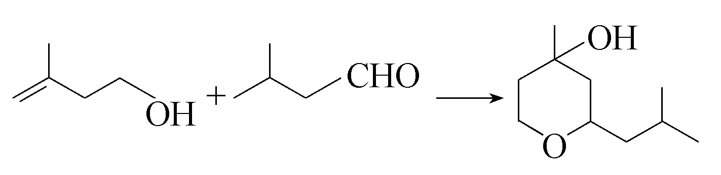 铃兰醚可由异戊烯醇(3-甲基-3-丁烯醇)与异戊醛,在稀硫酸的存在下相互作用制得。