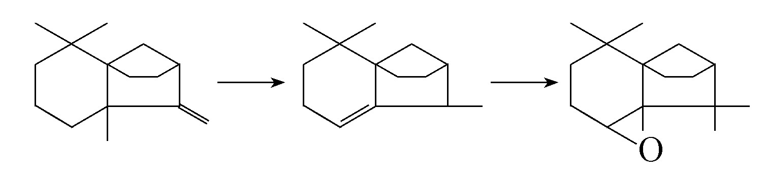 以取自松节油重馏分的长叶烯为原料,在酸性条件下使之异构化为异长叶烯,再用过酸进行环氧化,便获得环氧异长叶烷。