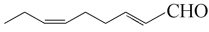 壬二烯醛又称为紫罗兰叶醛和黄瓜醛。它天然存在于紫罗兰叶油中,以及黄瓜、甜瓜、欧洲越橘、柿子椒等果蔬植物中。