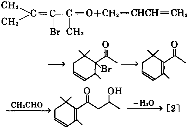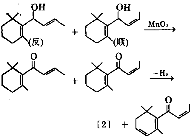 ⑤以β-紫罗兰酮为原料,按下式反应,可 制得[2]。