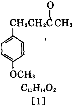 又称 4-甲氧基苯基-2-丁 酮、Frambinone、Raspbe rryketone methyl ether。天然品存在于沉香木 提取精油中。无色至浅黄 色油状液体。有强烈的花 香及水果样香气。相对分 子质量178.23。相对密度 1.0504(22℃)。熔点9~ 10℃。沸点277℃、106℃(2.933×103Pa)。折射率 1.5250。闪点101℃。不溶于水、难溶于丙二醇, 溶于乙醇、乙醚及非挥发性油。