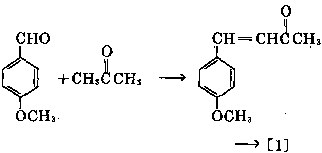 制法:①以大茴香醛和丙酮为原料,在碱 性条件下缩合,生成对甲氧基苯丁烯酮,在钯催 化剂作用下加氢,可制得[1]。