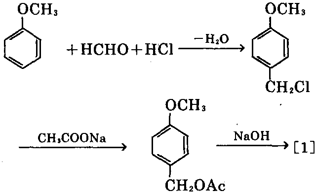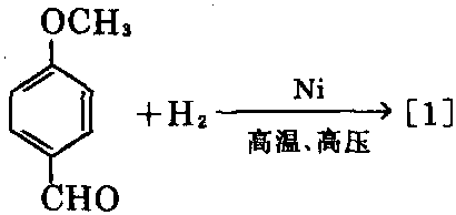 制法:①以大茴香醛为原料,阮莱镍(或铂) 为催化剂,以氯化亚铁为还原剂,进行高温、高 压加氢。