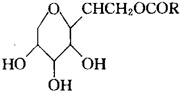 失水山梨糖醇酯的制法是,将山梨糖醇 和脂肪酸在催化剂存在下,或者在无催化剂 的高温 (200~250℃) 下进行酯化。现行的 制法,在反应中山梨糖醇发生分子内脱水,变 为失水山梨糖醇,所以得到的是1,5-失水山 梨糖醇酯[1]、1,4-失水山梨糖醇酯[2]和 山梨糖醇酯 [3]等的混合物。
