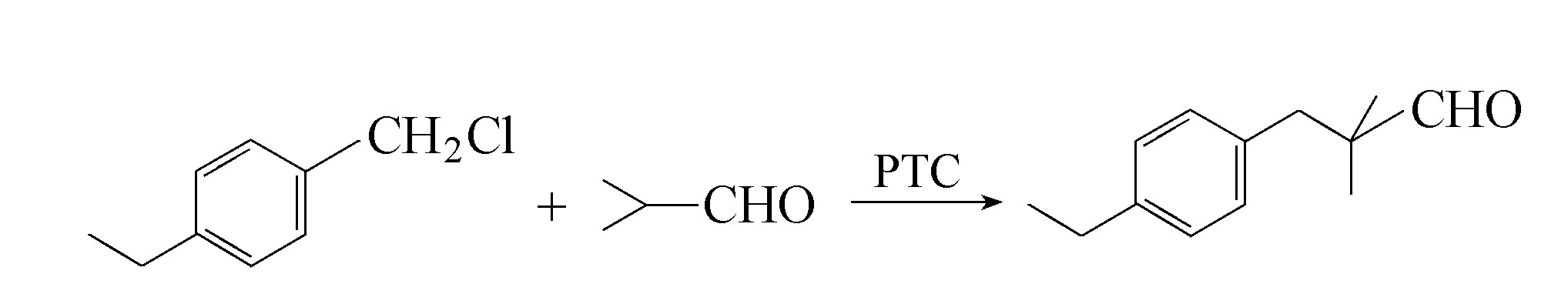以乙苯为原料,先经氯甲基化反应生成对乙基氯化苄,再与异丁醛在相转移催化条件下反应得到海风醛(化学世界,1988,№9,392)。