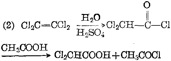 在下反应(1),或由四氯乙烯出发制得(2):