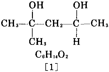 又称2-甲基- 2,4-戊二醇、 α,α,α′-三甲基 三亚甲基二醇、 Pinakon。无色透 明液体。有温和的 甜香味。有吸湿 性。低挥发性。相 对分子质量118.17。相对密度0.9216、0.924 (15/15℃)。熔点-40℃。沸点198.3℃、97℃ (1.333×103Pa)。闪点93℃。燃点450℃。折射率 1.4276。蒸气压8.00Pa(20℃)。溶于水、乙醇、乙 醚、低碳脂肪烃。高温时刺激眼睛、鼻腔粘膜。大 鼠经口LD504000mg/kg。工作场所最高允许浓 度为25×10-6。