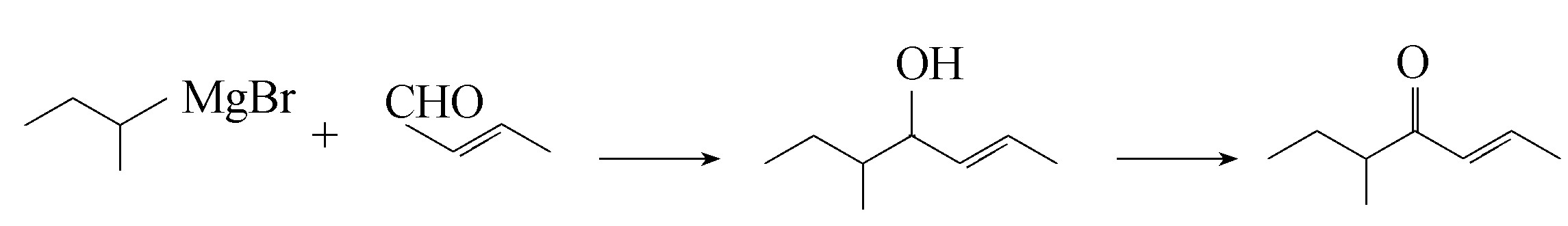 黄致喜等人则采用2-甲基丁醛为原料,先与(2-丙烯基)卤化镁进行格氏反应,生成5-甲基-1-庚烯-4醇,继之用二氧化锰或红矾钠氧化成酮,最后再经异构化等而成(中国专利1198432)。