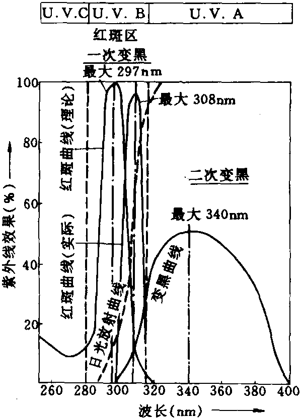 紫外线的波长与皮肤反应的关系,如图