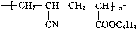 防水涂层胶(溶剂型)WP-10 : 由丙 烯酸酯、丙烯腈经水相聚合,再进行干燥,然 后加入甲苯、醋酸乙酯等溶剂调配成胶。结 构式为: