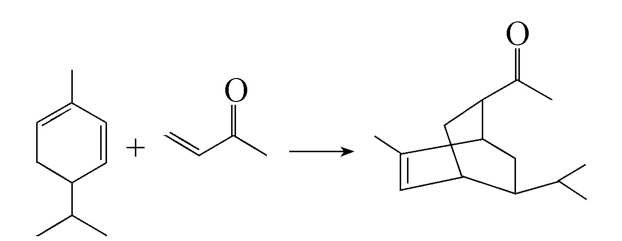 菲尔维酮是由α-水芹烯同甲基乙烯基酮经双烯加成缩合制得的。