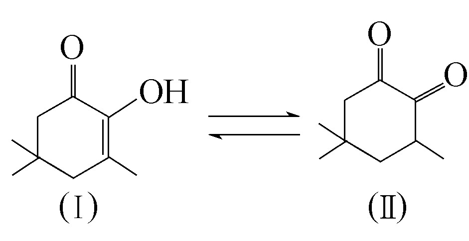 羟基三甲基环己烯酮在国内商业上常被称为烟酮,它天然存在于白肋烟草中,在化学结构上它存在着烯醇式和酮式之间的互变异构,式中(Ⅰ)为烯醇式,(Ⅱ)为酮式,因此两者的CAS登记号也不同。