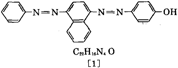 又称C.I.分散橙13、C.I.26080、4-[4-(苯 基偶氮基)-1-萘偶氮基]苯酚。深棕色粉末。 相对分子质量352.41。熔点149~153℃。不溶于 水,微溶于四氯化碳,溶于乙醇、丙酮、苯和溶纤 剂。在浓硫酸中呈暗绿光蓝色,稀释后呈暗绿 色,缓慢转变为棕色。最大吸收波长427nm。