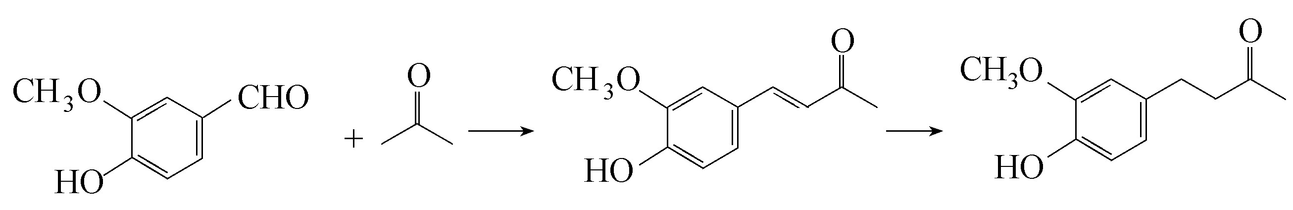 姜油酮系由香兰素与丙酮先在碱溶液里缩合,继之再选择性氢化制成。