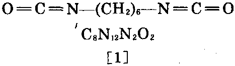 又称1,6-亚己基二异氰酸酯、 1,6-二异氰基己烷,简称HMDI。无色或浅黄 色液体。有臭味。相对分子质量168.20。相对密 度1.047。熔点-67℃。沸点255℃、127℃(1.333× 103Pa)、113~114℃(0.266×103Pa)、92~96℃ (0.133×103Pa)。闪点130℃。燃点454℃。折射率 1.4530。蒸气压0.0667×103Pa(85℃)、 0.667×103Pa(112℃)、1.867×103Pa(130℃)。不 溶于水(与水缓慢反应),溶于正己烷、苯、氯仿、 甲苯和一氯乙烯。化学性活泼,能与醇、胺反应, 在氯化铜、氯化铁作用下能聚合。本品蒸气压 高,在空气中浓度高,可刺激鼻、呼吸道。大鼠经 口LD50710mg/kg。工作场所最高允许浓度 0.02×10-6。