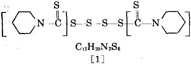 又称四硫化双五亚甲基秋兰姆、促进剂 TRA。浅黄色至灰黄色粉末。相对分子质量 384.66。相对密度1.53。熔点105~110℃。不溶于 水,溶于苯、丙酮、甲乙酮、乙酸乙酯、二硫化碳、 四氯化碳和氯仿。不吸湿。