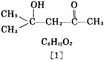 制法:以丙酮为原料,在碱性条件下缩合, 可制得[1]。反应在低温下进行,再用稀弱有机 酸中和,减压精馏,回收丙酮后,即得[1]。