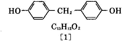 又称4,4′-二羟 基二苯基甲烷、双(4-羟基苯基)甲烷、4,4′- 亚甲基双酚、4-[(4′-羟基苯基)甲基]酚,简 称BPF。从水中析出者为白色或浅黄色叶片状 或针状结晶或粉末。相对分子质量200.24。相对 密度1.18(25℃)。凝固点115~120℃。熔点 158℃。沸点242℃(2.000×103Pa)。闪点232℃。 折射率1.576(25℃)。粘度15mPa·s(120℃)。能升 华。难溶于水,溶于碱水溶液、乙醇和丙酮。长时 间曝露在日光下,因紫外线而变色。对皮肤有刺 激作用,如果粘附在皮肤上,可用碱水溶液充分 洗涤。大鼠经口LD504950mg/kg。