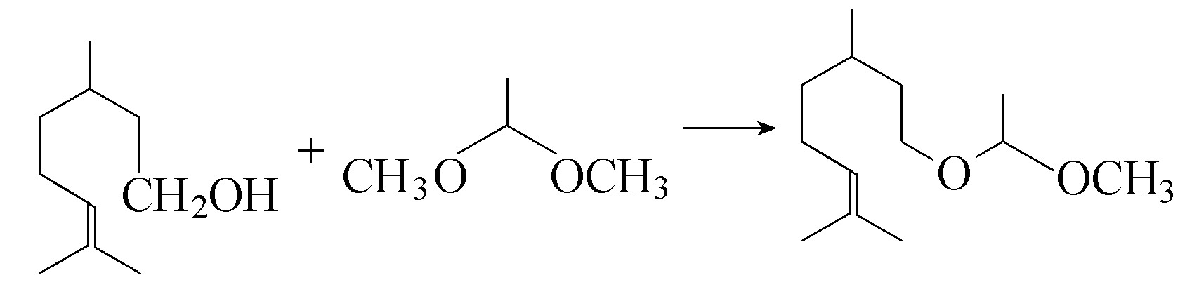 香茅基甲基缩乙醛系由香茅醇与乙醛二甲缩醛进行缩醛交换反应制得的。