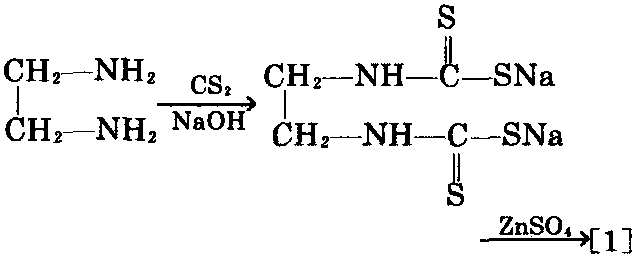 制法: 由乙二胺与二硫化碳在氢氧化钠作 用下,生成亚乙基-1,2-双(二硫代氨基甲酸 钠),再与硫酸锌反应,可制得本品。