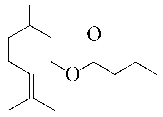 丁酸玫瑰酯被FEMA认定为GRAS,FEMA编号2982,并经FDA批准食用,欧洲理事会将丁酸玫瑰酯列入可用于食品中而不危害人体健康的人造食用香料表中,其ADI为0.25mg/kg。