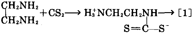 制法: 以乙二胺与二硫化碳在35~40℃下 进行反应,生成亚乙基二硫代氨基甲酸盐,加入 盐酸,环化,生成[1]。