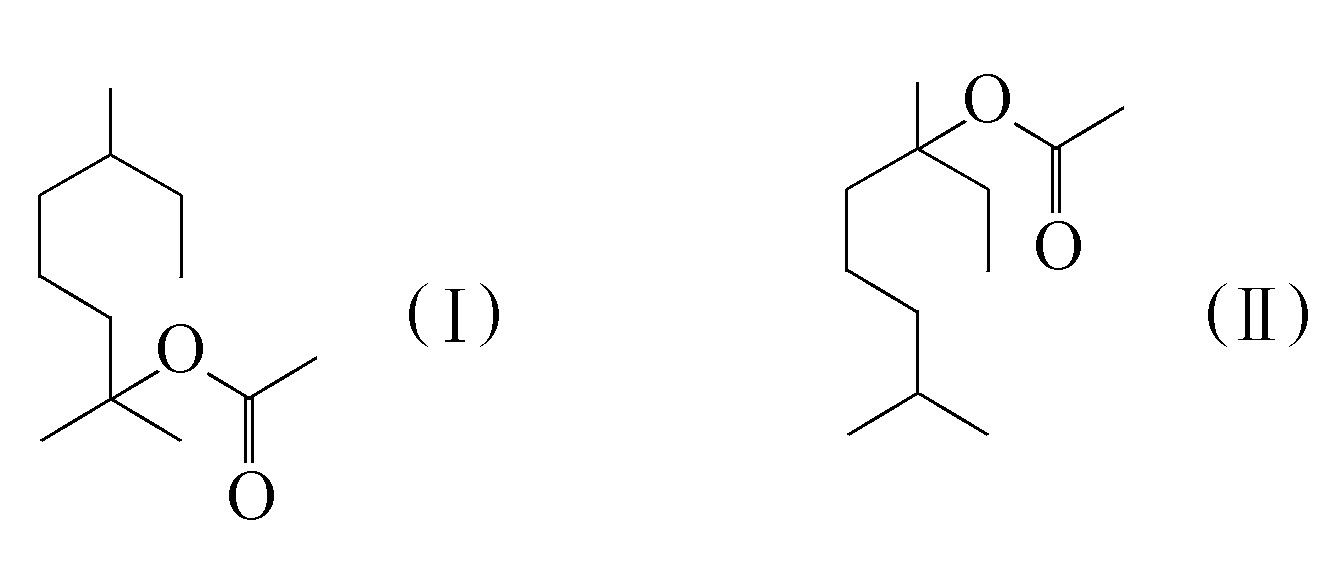 乙酸四氢别罗勒烯酯有新鲜的柑橘香气和草香香气。外观为液体,它是由乙酸四氢月桂烯酯(Ⅰ)和乙酸四氢芳樟酯(Ⅱ)组成的混合酯。