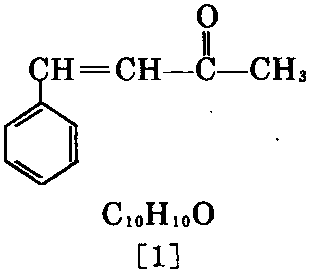 又 称4-苯基-3- 丁烯-2-酮、甲 基肉桂基甲酮、苄 叉丙酮、甲基苯乙 烯基甲酮。采用减 压蒸馏制得者为 无色至浅黄色有 光泽的片状结晶。 有香豌豆香气且有辣而带刺激性味。可燃。 天然存在于水解大豆蛋白中。有顺式及反式。相 对分子质量146.19。相对密度1.0076(47.3℃)。凝 固点39℃、熔点42℃。沸点261℃、211℃ (26.664×103Pa)、187.8℃(13.332×103Pa)、 161.3℃(5.333×103Pa)、143.8℃(2.666× 103Pa)、127.4℃(1.333×103Pa)、112.2℃ (0.666×103Pa)、81.7℃(0.133×103Pa)。折射率 1.5836(45.9℃)。微溶于水及石油醚,易溶于乙 醇、苯、乙醚、氯仿和硫酸。