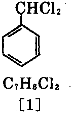 又称二氯 化苄、氯化亚苄、α,α-二氯甲苯。无色液体。有 刺激性气味及芳香气味。在空气中发烟。相对分 子质量161.03。相对密度1.2536,1.2557(14℃)。 熔点-16.4℃。沸点205.2℃。闪点 92℃。折射率1.5502。不溶于水,溶 于乙醇、乙醚、氯仿和四氯化碳。蒸 气压(×103Pa):0.800(75℃)、1.867 (90℃)、4.000(105℃)、7.999(118℃)。 与正辛醇、氯乙酸、己酸、庚酸形成 共沸混合物,本品含量分别为18%、3%、65%、 88%,共沸点为195℃、189.1℃、200.5℃、 204.0℃。其蒸气与空气形成爆炸混合物,爆炸 极限为1.1%~11%(体积分数)。在酸性及碱性 条件下水解生成苯甲醛。在乙酐中硝化时,可得 到邻、间及对位硝基化合物。小鼠经口LD50467 mg/kg。对皮肤、眼睛及粘膜有刺激性及腐 蚀性。