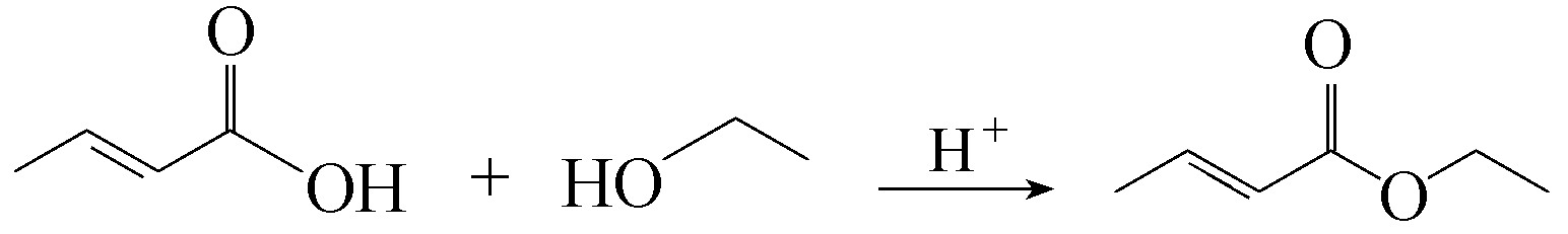 巴豆酸乙酯可以很容易地以巴豆酸为原料,与过量的无水乙醇在少量的浓硫酸或其他酸性催化剂存在下,加热回流反应脱水而成。