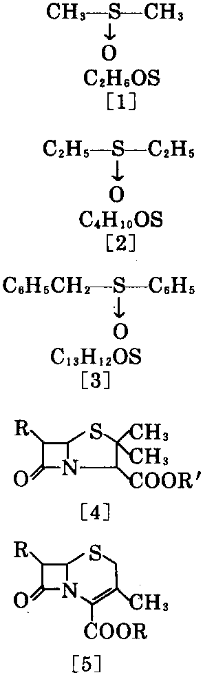 Morin 1963年发现,盘尼西林[4]氧化生 成亚砜,再经Pummerer转位,扩环生 成[5]。[1]的制法、用途,参见二甲基亚砜。